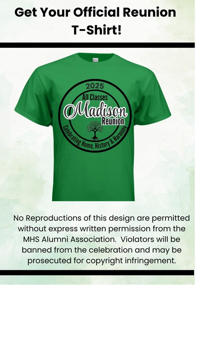 Last Chance to get your Official Reunion T-Shirt. Allow 4-6 weeks for delivery.